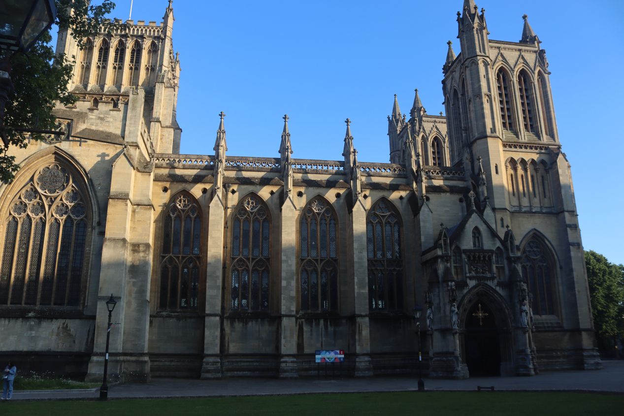 I initially visited Bristol Cathedral on Wednesday evening after it had already closed to visitors for the night. Liz and I came back together the next day though and our arrival was shortly before closing time, allowing us to slip inside and take a few pictures. Bristol Cathedral had the standard Gothic template for its design, with a cruciform layout and two rows of stone pillars holding up the weight of the ceiling along with stained glass windows adorning the walls to let in the late afternoon sunlight. While Bath Cathedral wasn't quite as grand as the most prestigous medieval English cathedrals (two of which I visisted on this trip and are discussed on the next page), it was still quite a spectacle to behold. There was also a small exhibit here named All God's Children which discussed the role that the wealth generated by the slave trade had played in the construction of the city of Bristol and this cathedral more specifically. Almost all of the cathdral's major patrons in the 18th and 19th centuries had connections to the slave trade in some way; the whole city of Bristol was practically built on the immense money that it produced. This was important context to provide for visitors to the cathedral, not least because it highlighted the quite substantial non-white population that lived and worked in Bristol during that period.