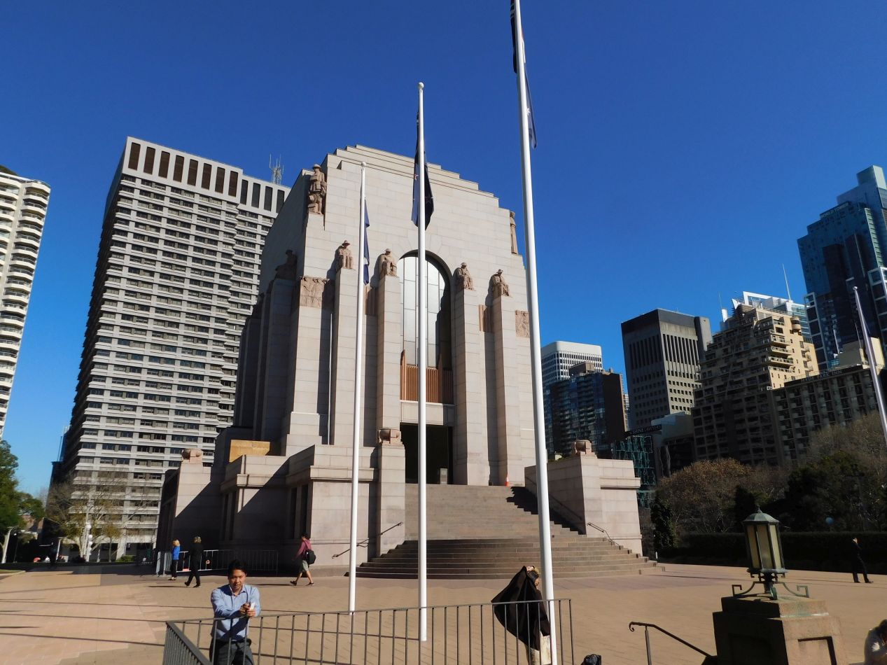 The cathedral sits next to Sydney's version of Hyde Park, which is significantly smaller than the more famous London green space that shares the same name. The Australian Hyde Park is divided in half by the presence of Williams Street, and the southern half of the park contains a reflecting pool and Sidney's Anzac War Memorial. For those who aren't from Australia/New Zealand and don't happen to be military history buffs, the ANZAC soldiers (standing for Australian and New Zealand Army Corps) were the men who fought on the British side in World War I, most notably on the horrible battlefields of Gallipoli. The bravery of the Anzacs in the face of otherwise pointless slaughter was an important part of the emerging national identity in both Australia and New Zealand, and there are many memorials to their memory across both countries. There's a war memorial to the Anzacs in the capital city of every Australian state along with the national capital of Canberra. The Anzac War Memorial in Sydney was constructed in 1934, consisting of a square Art Deco design made out of white marble containing a large open area on the inside. The main focus of the interior is a bronze sculpture of a deceased youth, representing a soldier, who was controversially depicted in naked form to suggest its role as a sacrificial offering. The memorial is a solemn place and we couldn't help coming away feeling moved by its presentation.