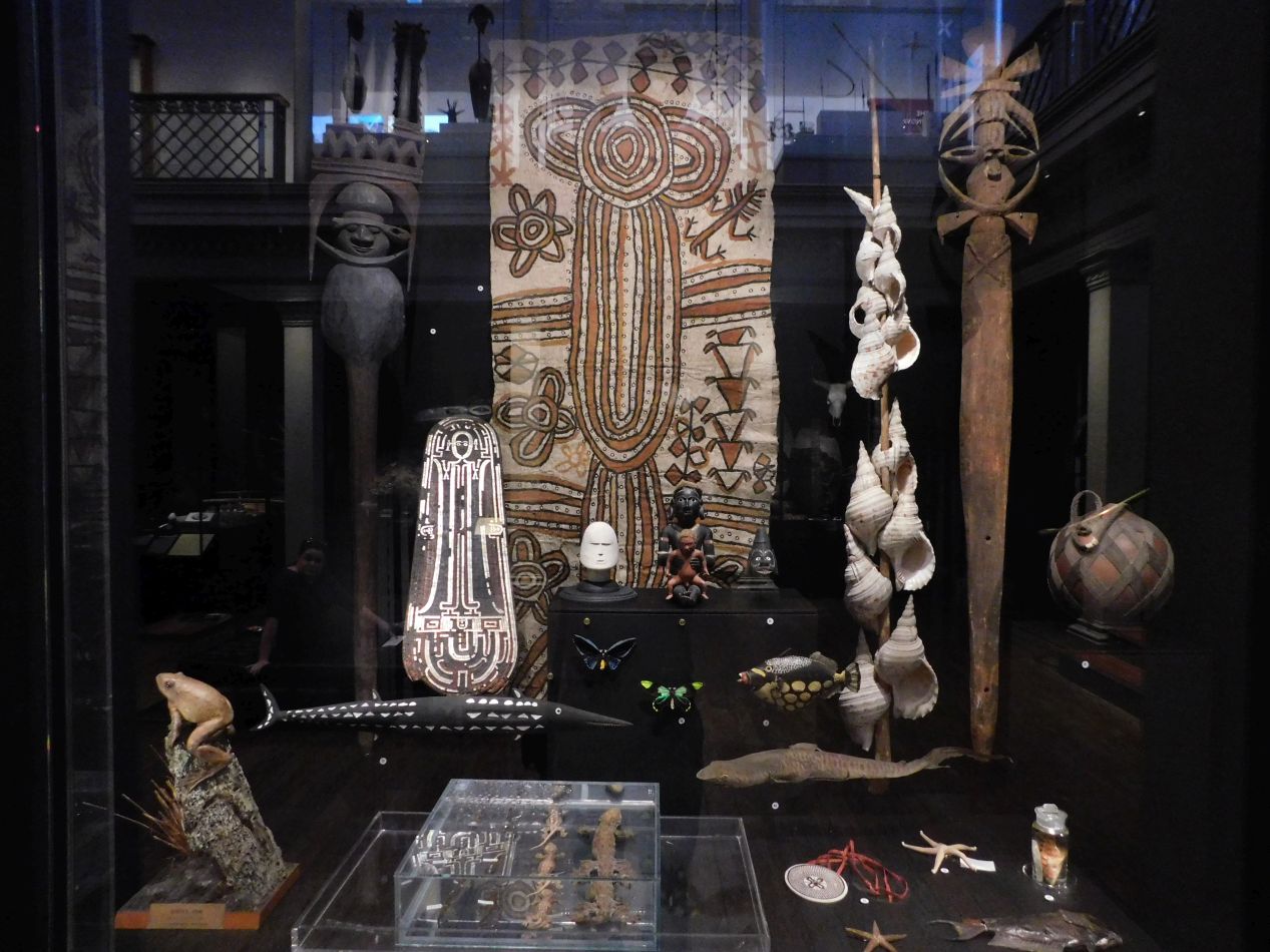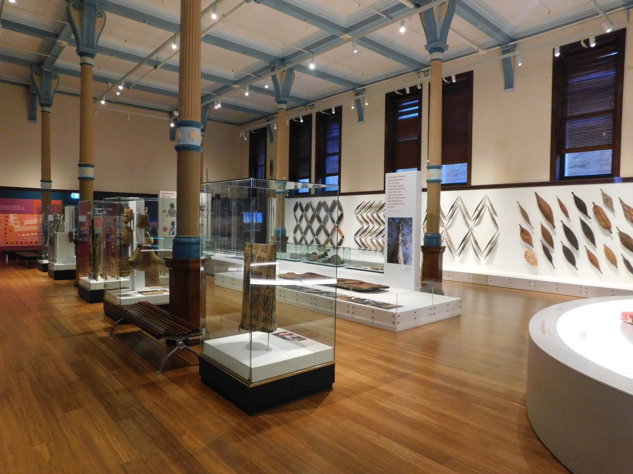 Across the street from the Anzac War Memorial was the Australian Museum, the place where we headed next. The Australian Museum is dedicated to showcasing natural and cultural history, with a lengthy history of its own dating back to its founding in the early days of the colony in the 1820s. The current sandstone building housing the museum was opened to the public in 1857, and the museum has been expanded repeatedly over the decades since to keep pace with the growing size of its collections. The most interesting of the museum's permanent exhibits was the one showcasing aboriginal artwork and way of life, everything from wooden shields and spears to didgeridoos. There was an extensive discussion here of the many challenges facing aboriginal communities, and a look at how the changing environment has affected their traditional way of life.