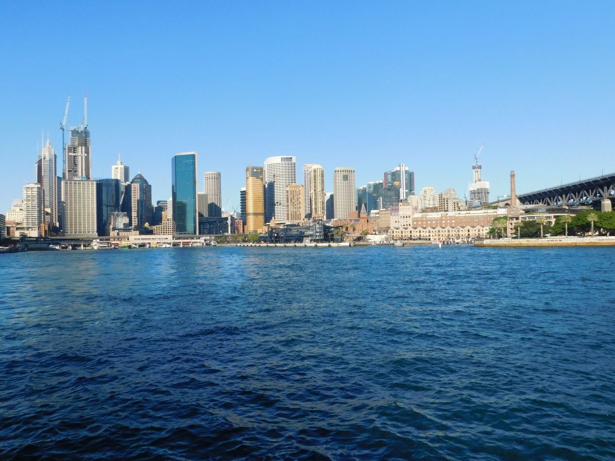 Soon enough the ferry passed underneath Sydney Harbor Bridge and pulled into the central portion of the habor. This is the iconic image of Sydney as a city, with the majestic buildings rising up from the water with the Harbor Bridge on one side and the Opera House on the other side. The city was definitely showing its best side on this morning and we were loving every minute of this approach by sea. We would be back to Sydney Harbor Bridge the next day to take part in the BridgeClimb tourist attraction; for now, we had a tour to take at the Opera House.