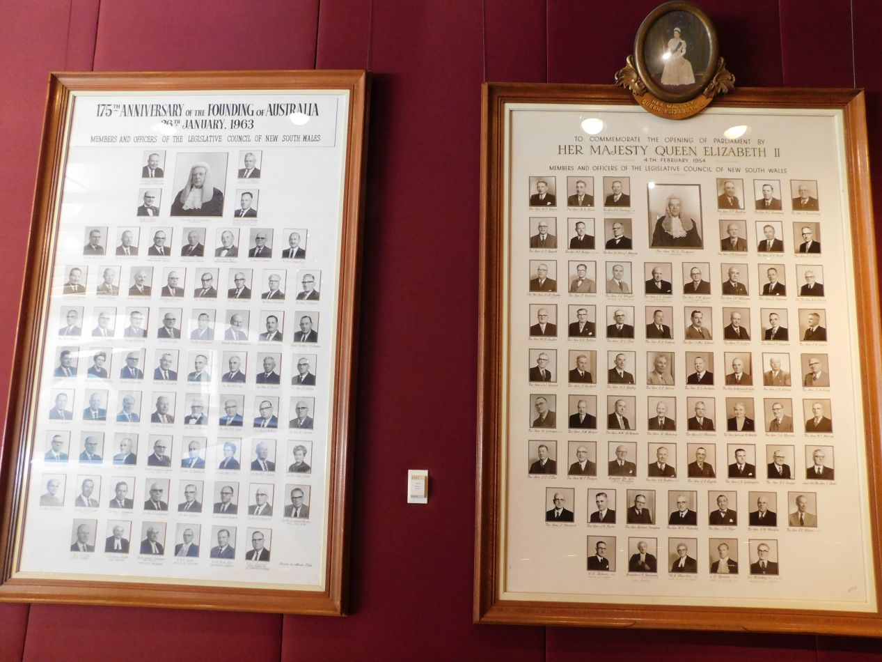 These are some of the images from the interior of the parliament building. We were only able to visit the Legislative Council room, the upper house in the New South Wales Parliament, since the Legislative Assembly (the lower house and somewhat confusingly the more important of the two) was in the process of debating that controversial piece of abortion legislation. The New South Wales government is modeled on the British parliamentry system, and therefore the Legislative Council room that we visited was roughly the equivalent of the British House of Lords or the Canadian Senate. The physical room itself even maintained the same "red" coloring, a pattern that we would see repeated again when we traveled to Canberra later on this trip. With all of the attention focused on the debate taking place in the Legislative Assembly, we were able to wander around the deserted upper chamber without anyone paying much attention.