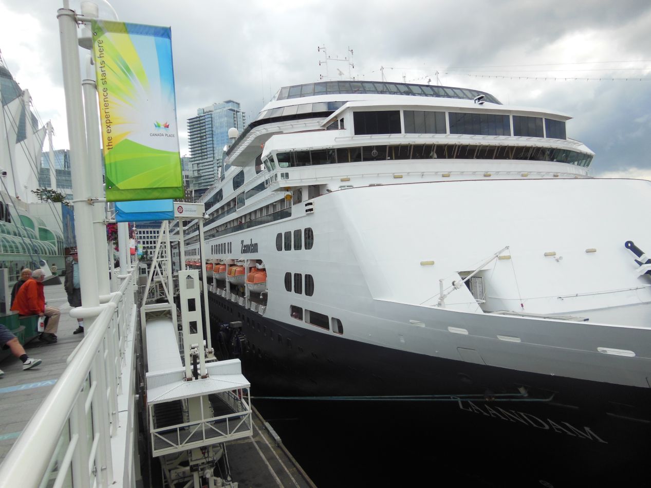 On the way back to turn in our bike rentals at Stanley Park, we followed along the northern coastline of Vancouver's downtown and stopped at what's known as "Canada Place." This is the home of the city's convention center as well as the docking location for the cruise ships that come to Vancouver. There were several cruise ships in port when we visited, and it was amazing to see just how large they were. The scale of these ships is nothing less than fantastic, stretching for hundreds of feet in length and approaching the height of a skyscraper. The largest of these cruise ships must have had a dozen different decks, and I suspect that several of these ships were about the same size as the famous Titanic if not bigger. I've never taken a cruise before since I prefer to plan out my own trips, but it might be worth it at some point just to experience traveling on one of these monstrosities.
