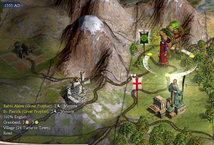 Discover Nationalism in 1540, start work on Taj Mahal in Tenochtitlan. Mansa Musa loses another city in 1545, the same turn I finished the Forbidden Palace (didn't really help all that much, to be honest). My Great Merchant traveling through English territory comes across some interesting travelers: