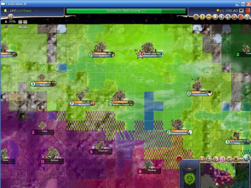 My civ was at its peak of productivity in 1700AD, one turn before I discover Astronomy (obsoleting my Colossus) and my golden age ends. Here's the big picture: