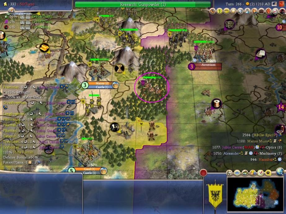 Caesar truly had been a worthy foe, I just had way too many cities building units for him to stop me. If you set every city to building knights, you'd be surprised how effective than can be sometimes! Once you've got more cities than the rest of the world combined, it's pretty much game over for the AIs no matter what you do...