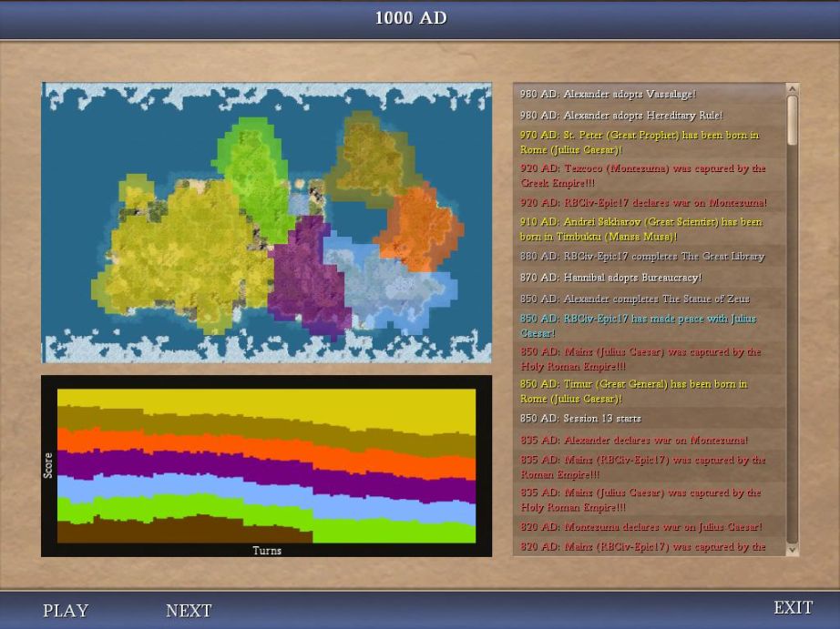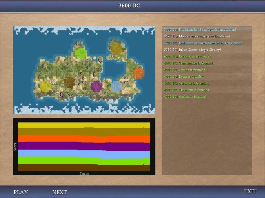Usually I don't post the Firaxis score, since it doesn't mean very much, but this was my highest-ever by a wide margin, so here it is. As several others have noted, it seems easier to get a high score in Beyond the Sword than in the original version of Civ4. I think this is due to two reasons: first, the difficulty levels are generally a little bit easier in the expansion (that is, "Monarch" in the expansion is a little easier than "Monarch" in standalone Civ4, even though the AI is better) while the point values are unchanged, resulting in higher scores. Secondly, the existence of capitulation and vassal states skyrocket the point totals upwards, as vassals are counted as your cities here, and the scoring is mostly based on population + fast finish. On the whole this is all trivial, just explaining for the curious what's going on.