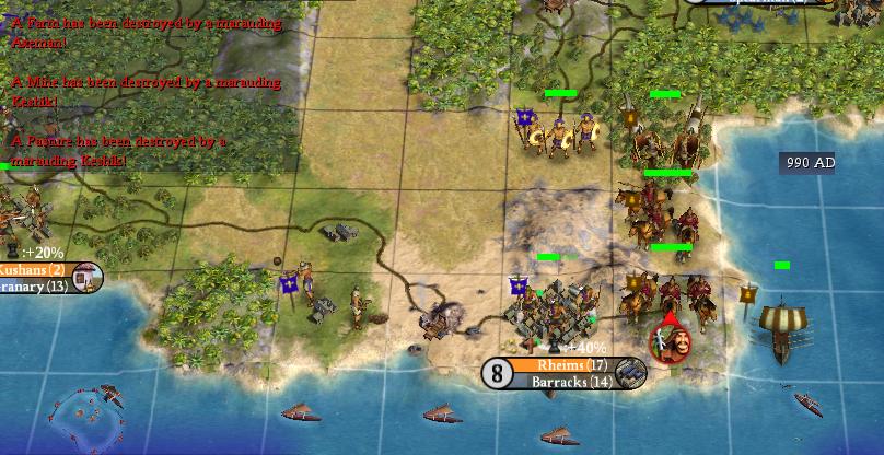 On the same turn, still in 970AD, my forces in the west remove the barb presence from my subcontinent: