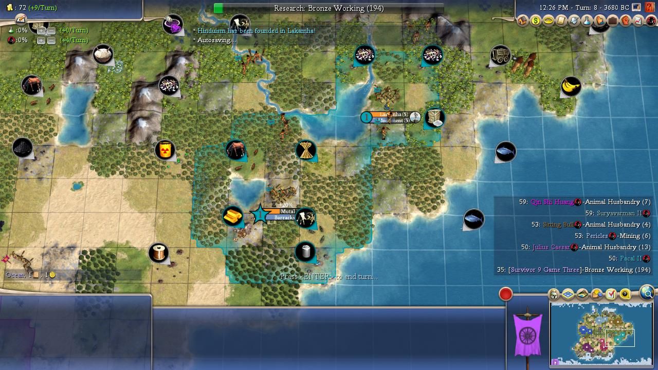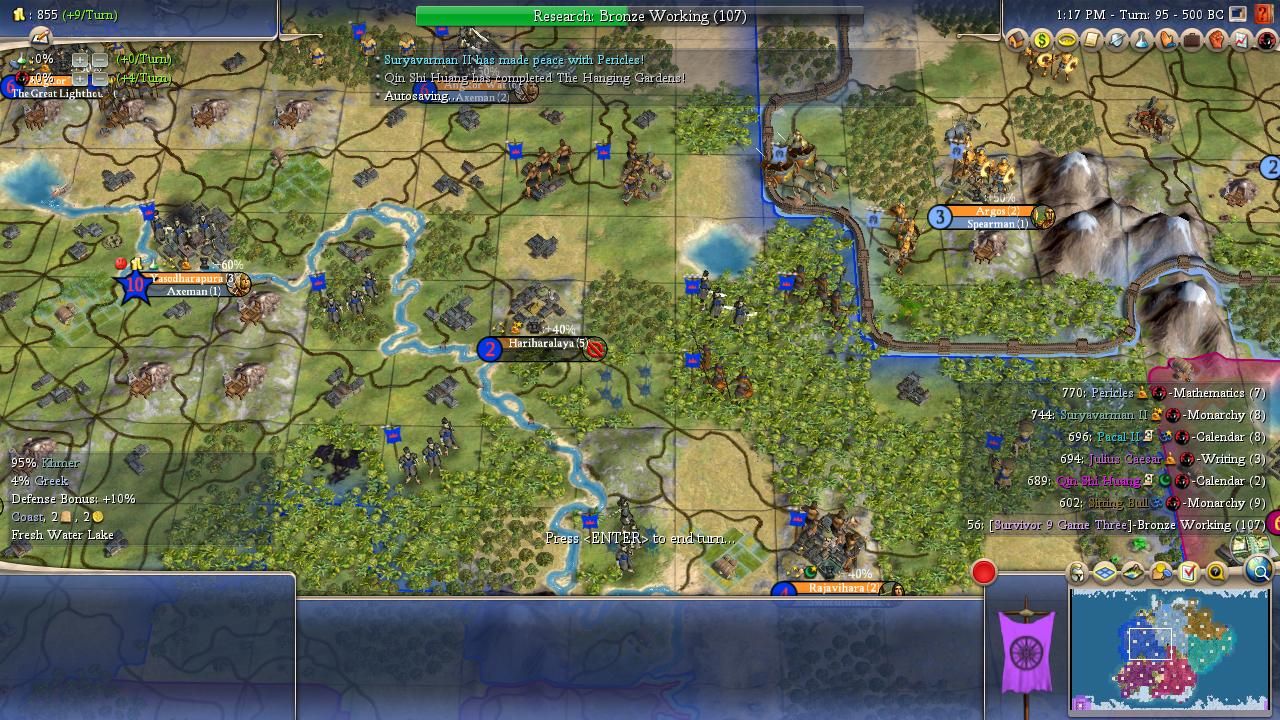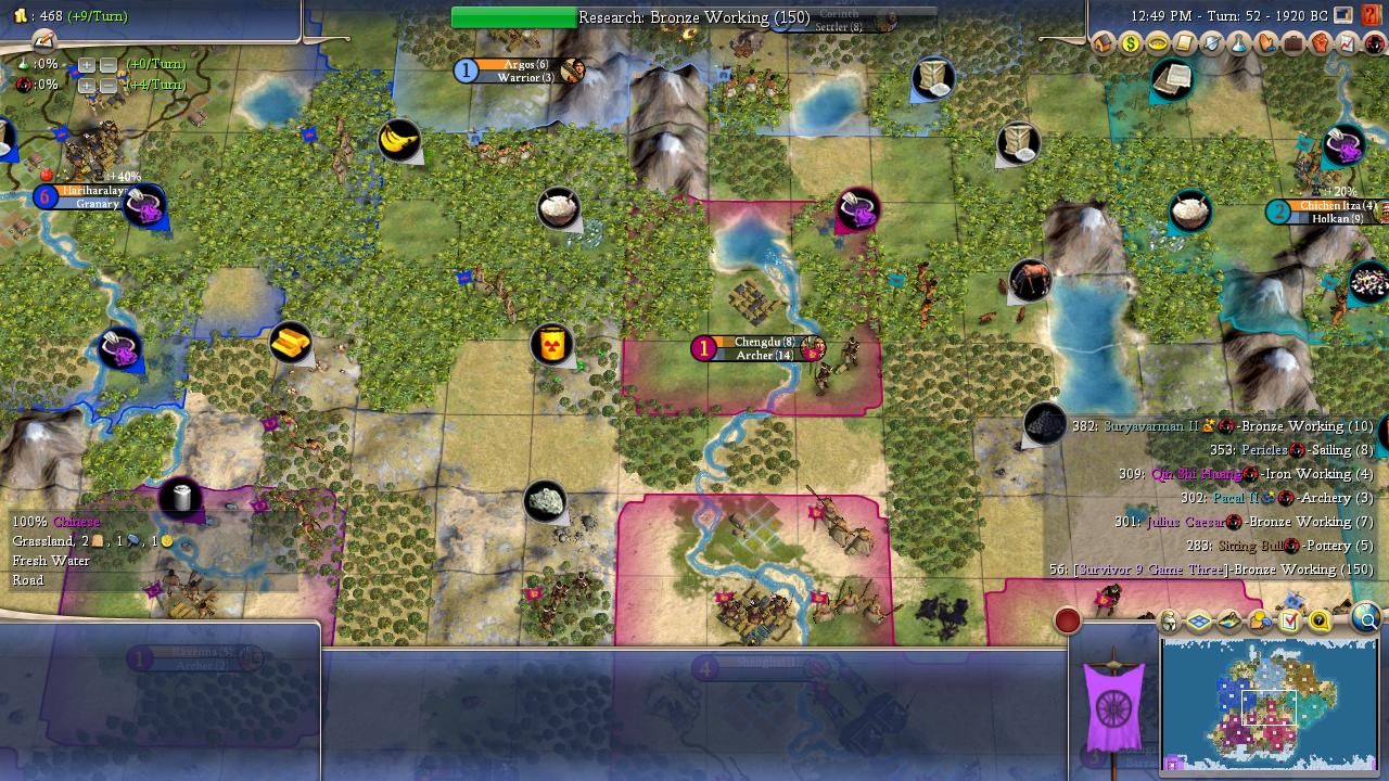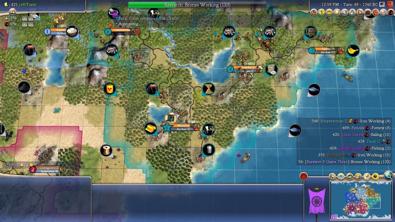 "There sure are a lot of angry Pacals amongst the fans now Bob. Speaking of seeded leaders in ruts, look at Sury, who only just settled his sixth city after being at five for so long. Those wonder builds and that one barb city has hurt him."