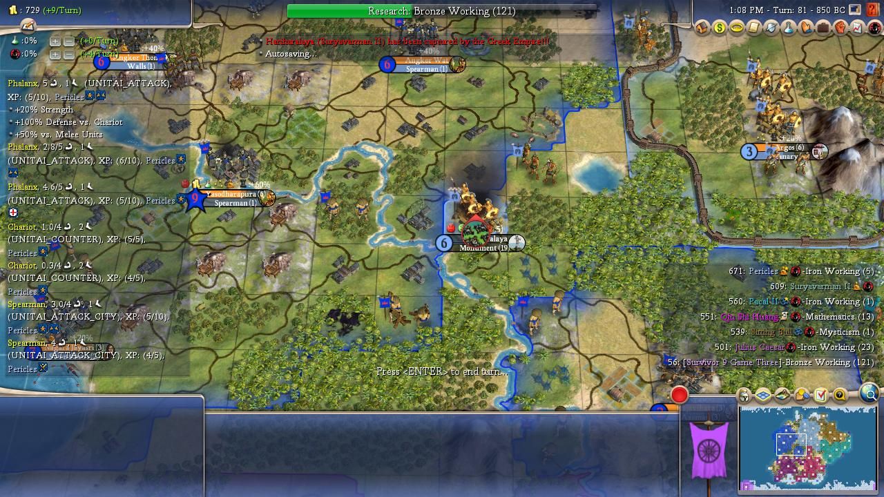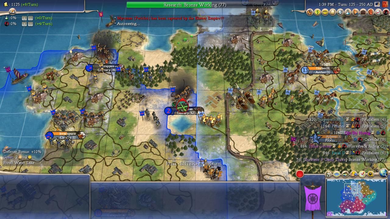 "Yes, which makes getting more cities out that much more important. And look Joe, Pericles is plotting, and has a massive Phalanx stack building up in Argos near Khmer territory!"