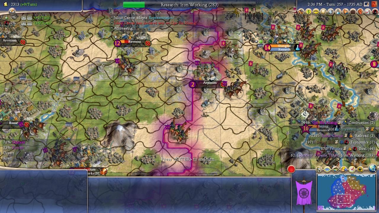 "Yeah, it's definitely a blow to Sitting Bull. And that's it for Julius Caesar! Qin secures himself a hat trick on Turn 289."