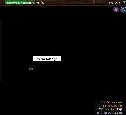 Since this was my first game of Civ4 - and it was played under very unusual circumstances! - I'll try mostly to limit myself to initial impressions rather than making suggestions. I need some more data before coming to any conclusions. But the short story is that I had a blast with this game even though I had the hardest time seeing what was going on. Not because I didn't understand the game's controls - because of this:
