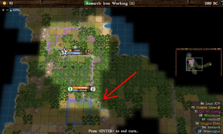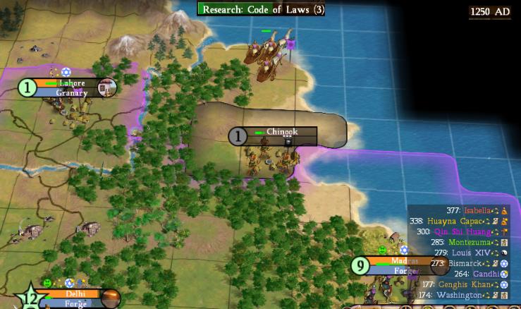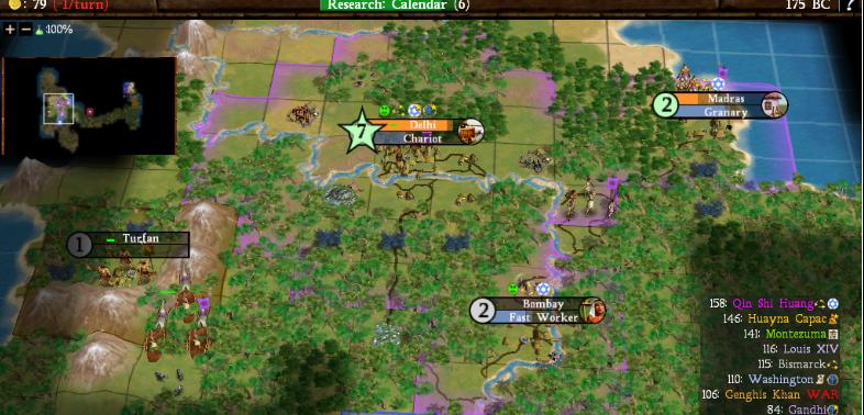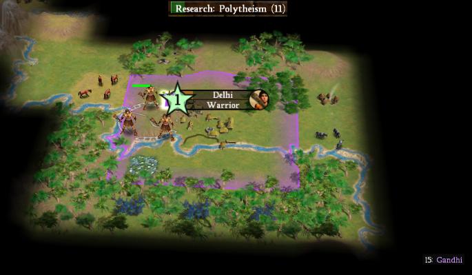 Note: Gandhi had his original Spiritual / Industrious trait pairing for this game, which he would retain until the Warlords expansion shuffled all the leader traits around.