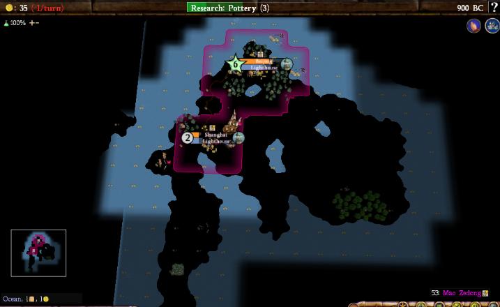 I put Shanghai where I did to try and make the best use of the few non-desert tiles on the starting island. One tile to the west would have been a better spot (and I saw several others put cities there), but it also would have wasted one of the few grassland tiles on the island. Tradeoffs like these are what makes the Civilization games fun.