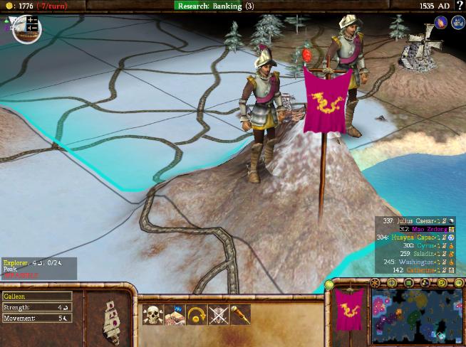 OK, so apparently my explorers are now mountain climbers. Aren't peaks supposed to be impassable? Or is this just a feature of the explorer unit that I didn't know about? If I'm just missing out on a game concept here, feel free to tell me, but that struck me as decidedly odd. In a war, what would happen if these guys camped out on top of a peak? Could anything attack them? I'm confused here.
