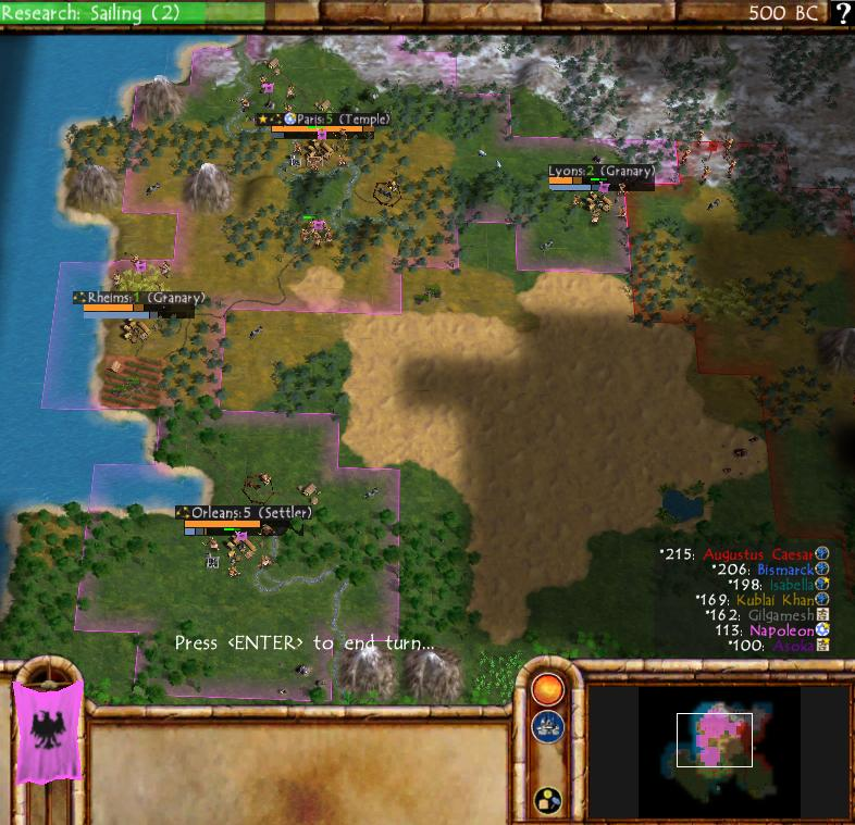 EDIT: A comment on our local Discord from ABC170 about those pink borders made me realize where they were coming from: they were a leftover detail from Civ3! France infamously had pink borders in Civ3 due to some kind of residual anti-France feeling in the United States when the game was made in 2001. Now I can also recognize Germany's blue coloring from Civ3, Rome's red color, India's dark purple, and so on. It finally makes sense!