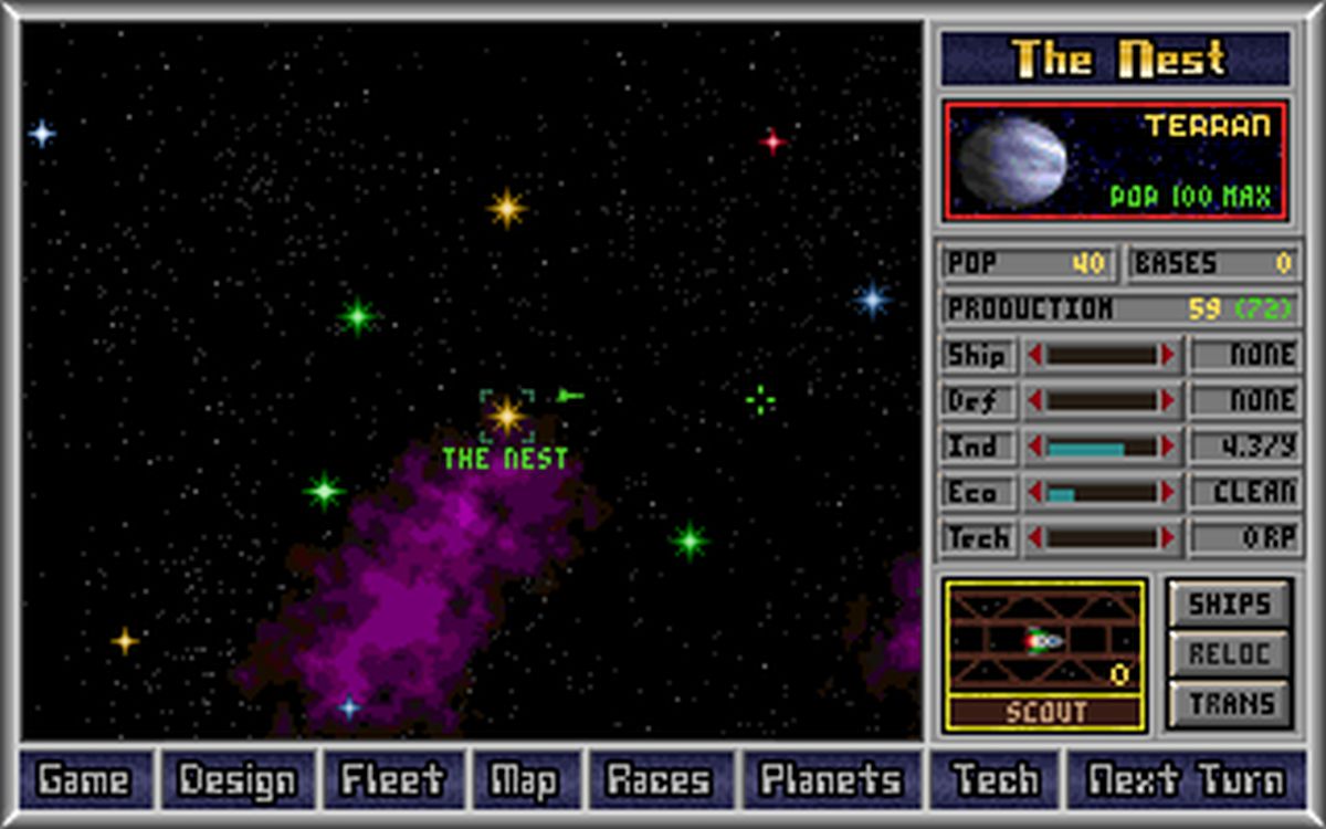 That brush skirmish with the Humans was the only combat that took place throughout the early game. AI races can only spawn at yellow stars in Master of Orion and it was obvious from an early date that there was no one else anywhere in the northwest portion of the galaxy. I soon discovered that the Mrrshans and Humans had started in the yellow star cluster to the south of Anthill while the Bulrathi were further to the east beyond that wide gulf of space. The Meklars later proved to be located at that lonely yellow star in the deep south while the Sakkra were a mystery as I remained out of contact with them for ages and ages. With no border planets to clash over and most of the Klackon racial enemies missing from this game, my early trade income soon matured into friendly relations with almost everyone. There were no Alkari in this game, no Silicoids or Darloks, and the Sakkra remained out of contact so they couldn't poison the galaxy against my bugs. There weren't even any Psilons present to create a ticking time bomb with their research superiority. I could relax and take my time, voting for the bears at the first two Council elections for bonus dipo points, trading for some key techs that were missing from my tech tree like Terraforming +10 and Warp 2 engines, and largely just chilling out while developing my empire. While these weren't the most tense or exciting Livestream sessions, things were developing as smoothly as I could have wanted.