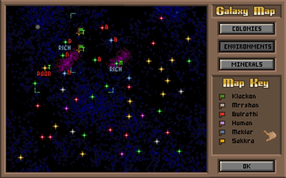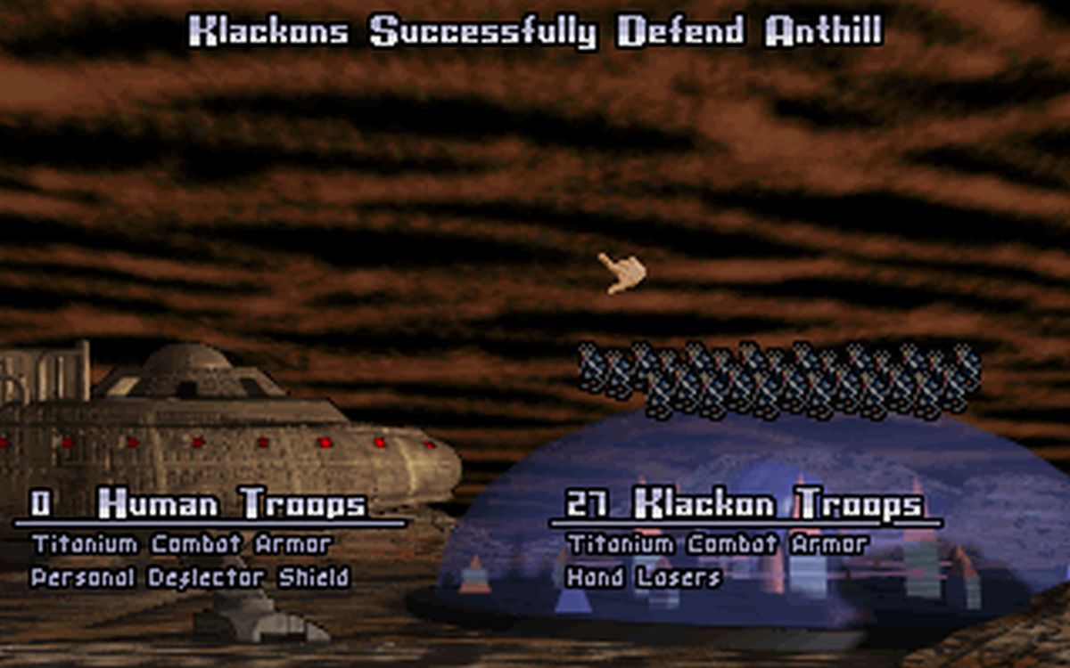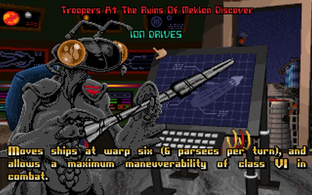 As a reminder, the Klackons are generally considered to be one of the very best races in Master of Orion. Their racial ability is that they get double production from their population; when everyone else is getting 0.5 BC per pop point at the beginning of the game, the Klackons get 1 BC per pop point. This gives the Klackons the fastest growth curve of anyone in the early stages of the game, nearly as quick as the Silicoids in terms of pure production and without their horrible growth penalties and research restrictions. No one stands up new colonies faster than the Klackons and their racial ability still scales well into the later portions of the gameplay, as the bugs are still getting that doubled production from population which remains relevant hundreds of turns into the game. This has caused many players to rate the Klackons as the game's strongest race; I disagree and believe they are slightly weaker than the Psilons, largely because the Klackons have four different racial enemies (Alkari, Mrrshans, Sakkra, and Silicoids, plus the Darloks who everyone hates) while the Psilons have no diplomatic penalties at all. This means that the Klackon explosive growth curve is often wasted by early unwanted warfare, but if the bugs would get left alone for the first hundred or so turns, the rest of the galaxy is in for a world of hurting.