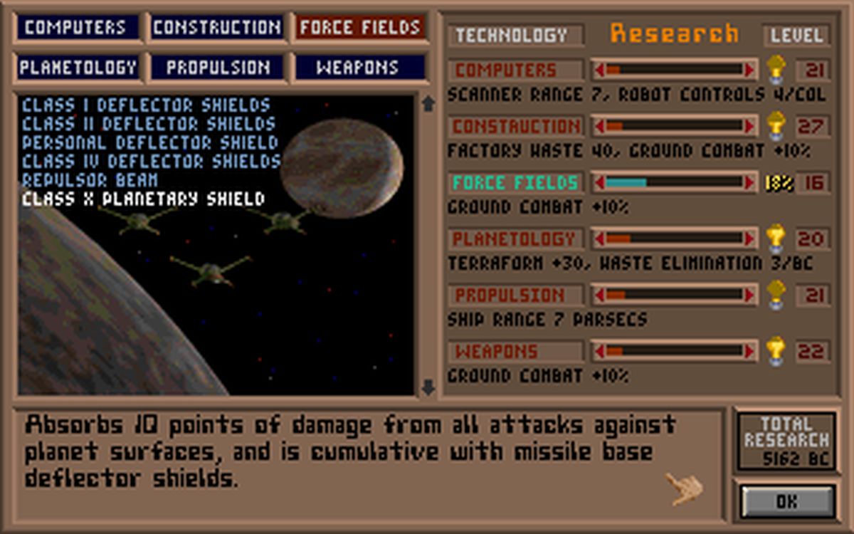 With the passage of time though, those technological flaws were beginning to disappear. I was able to research Planetary Shield X which made my worlds immune to most of the threats that the AI races could field, then a little later upgraded from Merculites to Scatter Pack VII missiles to give my bases a sevenfold increase in power. Improved Robotics IV was in the tech tree and doubled my factory count, followed by Terraforming +40 significantly increasing the size of my worlds. I had earlier traded for Terraforming +10 and then later +20 but this still helped a lot, especially with all of those extra factories.