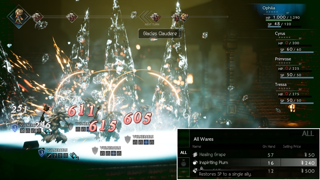 Obviously an attack dealing as much as 600 damage was a real problem with Ophilia having barely more than 1100 HP to her name!